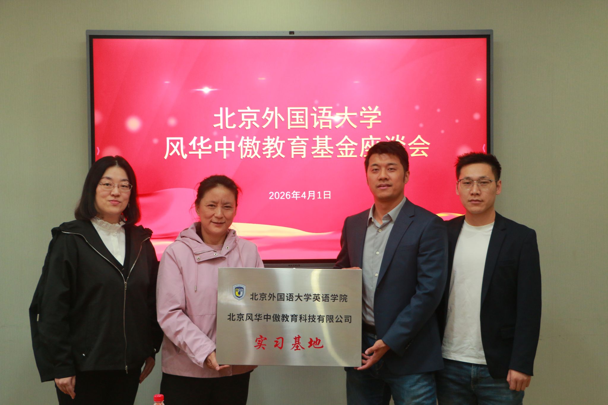,向北京风华中傲教育科技有限公司授予“实习基地”牌匾,深化校企合作、搭建实践育人平台。