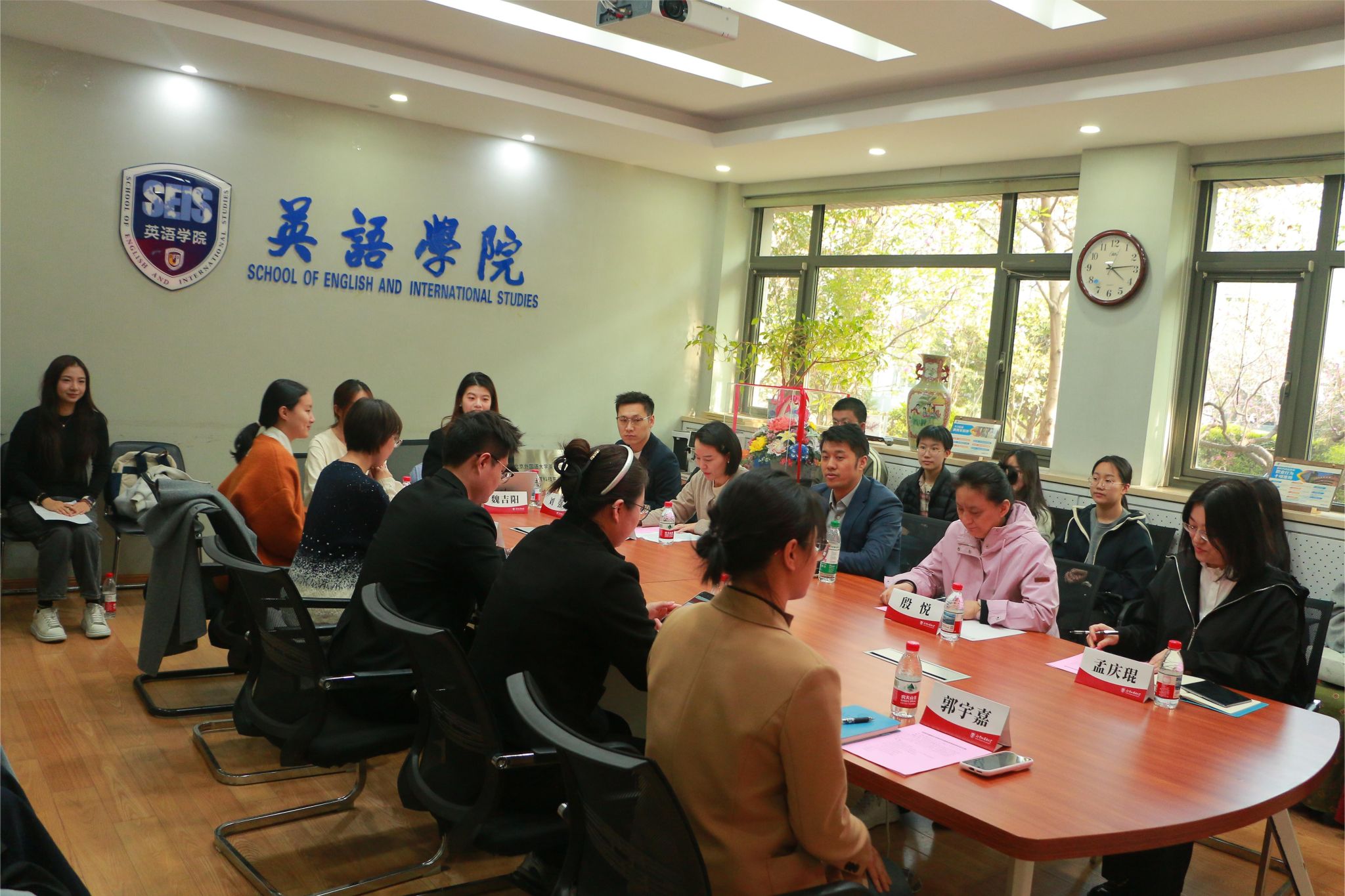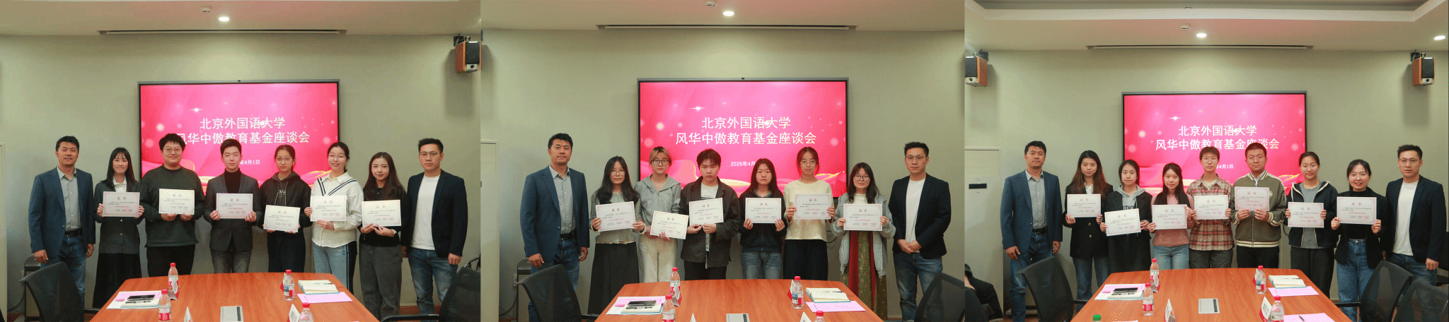 成功举办了“风华中傲教育基金”座谈会。北京风华中傲教育科技有限公司总经理刘帅、运营总经理刘强、营长付永浩、销售代表刘佳莹,北外校友办主任、教育基金会秘书长姚雪,教育基金会王龙仪,探花av