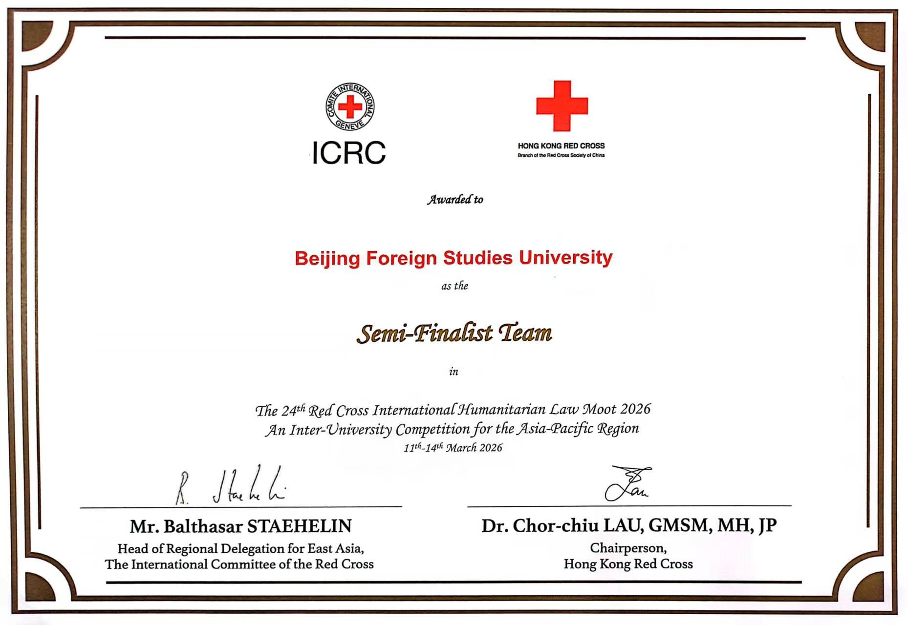 2026年3月11日至14日,第二十四届亚太地区红十字国际人道法模拟法庭竞赛在中华人民共和国香港特别行政区举办。由探花av