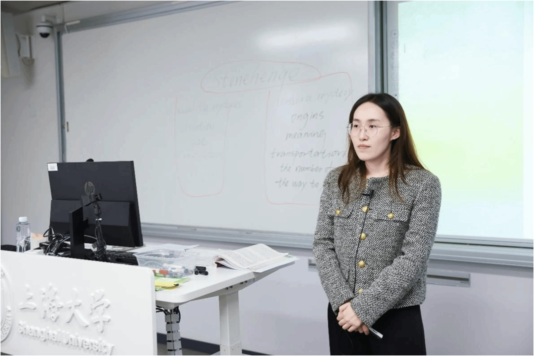 闵行区田园高级中学的张子怡老师以《高中英语(上外版)》选择性必修三第三单元“Reading A: Stonehenge”为内容进行了教学展示。张老师从语篇体裁、语篇结构和小标题入手,由浅入深地引导学生掌握巨石阵的相关知识,最后通过口头表达活动激发学生的学习兴趣。展示课后,陈亚平教授和徐锦芬教授分别就核心素养的融入和以学生为中心教学的实施提出了指导意见。