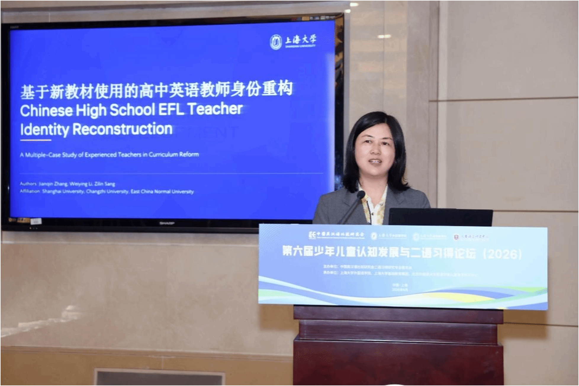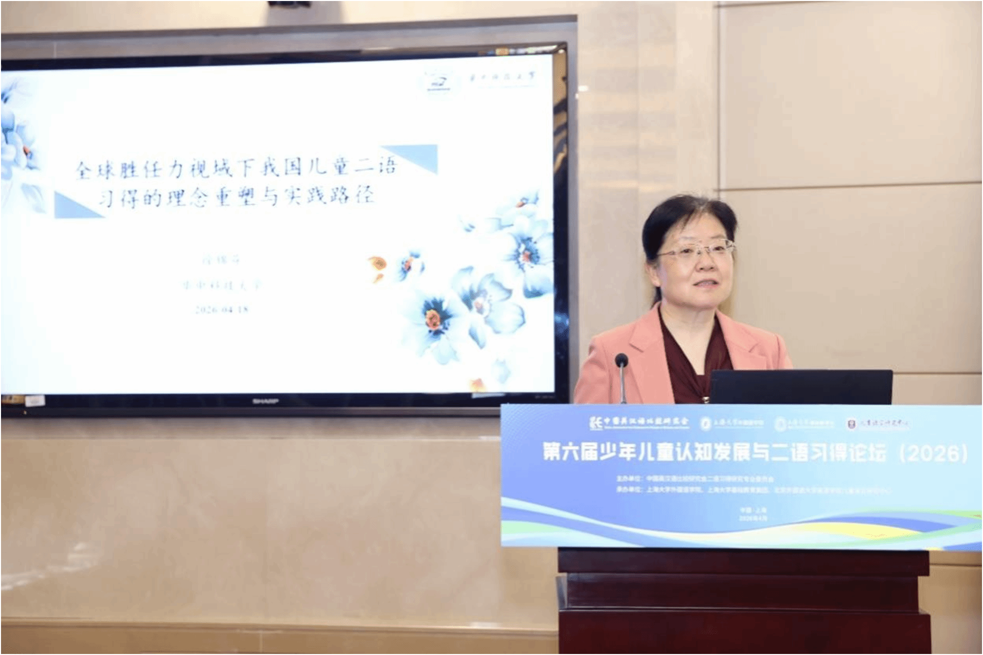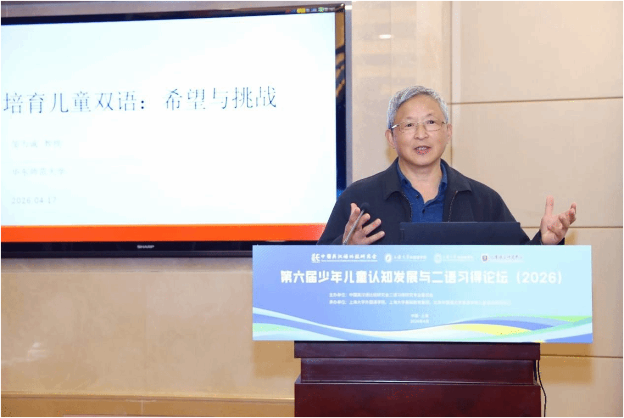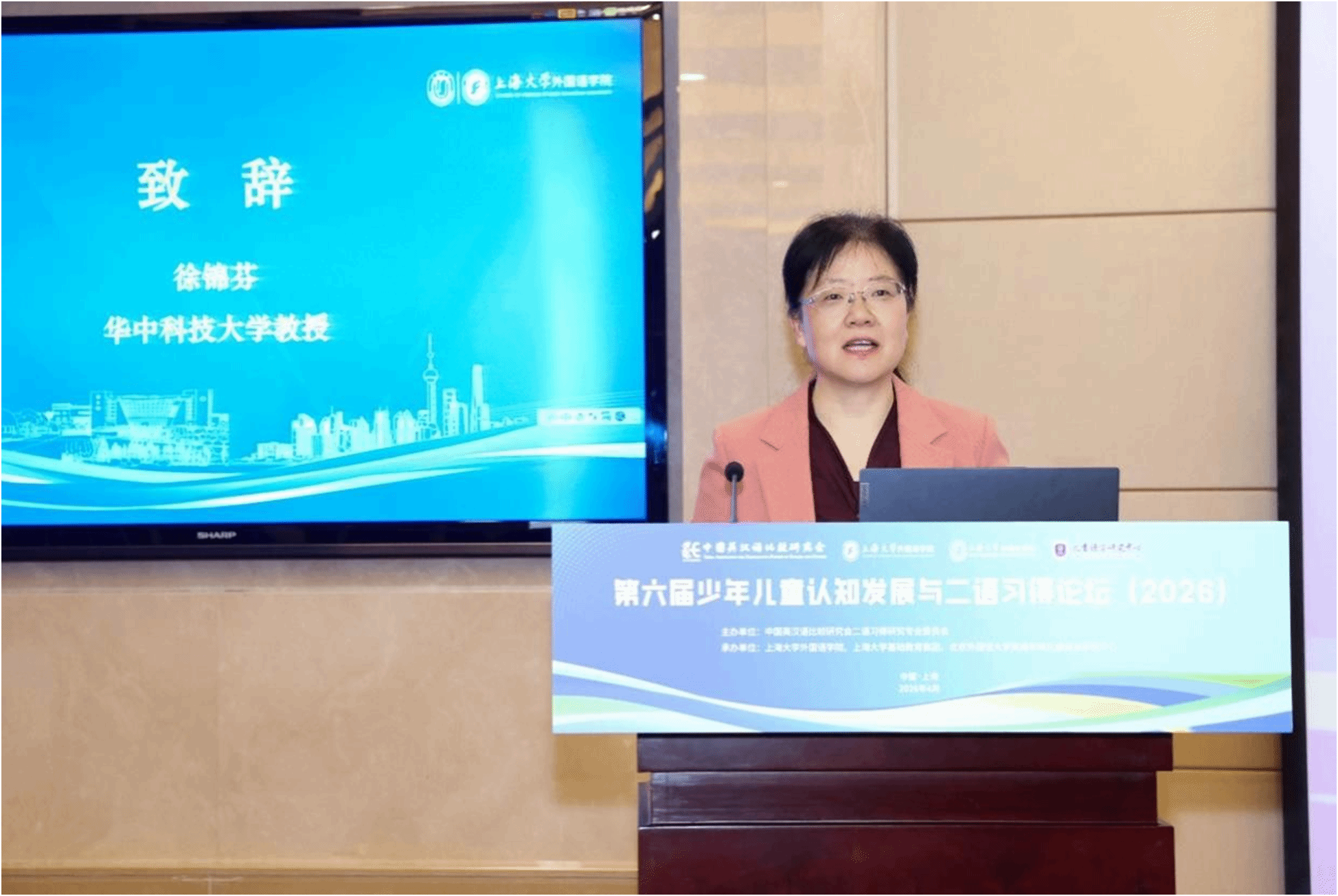 儿童语言探花av联合承办的“第六届少年儿童认知发展与二语习得论坛”在上海大学宝山校区乐乎新楼学海厅举行。中国英汉语比较研究会二语习得研究专业委员会主任委员、华中科技大学徐锦芬教授、探花av
