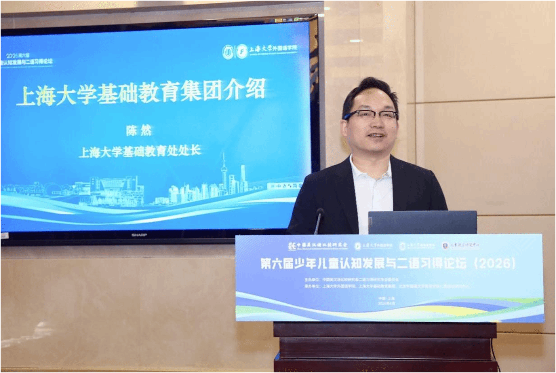 随后,上海大学基础教育处陈然处长介绍了上海大学基础教育集团的发展情况。他指出,外语在基础教育领域发挥着不可替代的重要作用,跨文化交流能力作为外语学习的核心,是人工智能时代不可或缺的关键能力。为此,基础教育集团希望通过与二语习得专家与学者深度合作,在外语教学领域展开新尝试,传承钱伟长老校长学贯中西的精神,提升基础教育集团下属学校的外语教育教学水平。