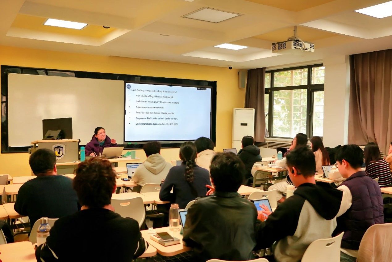 邵雪萍老师应邀作题为“‘华服即暴政’:第一对开本版《李尔王》中的服饰政治与王权解构”的讲座,吸引了近百名师生到场参与。