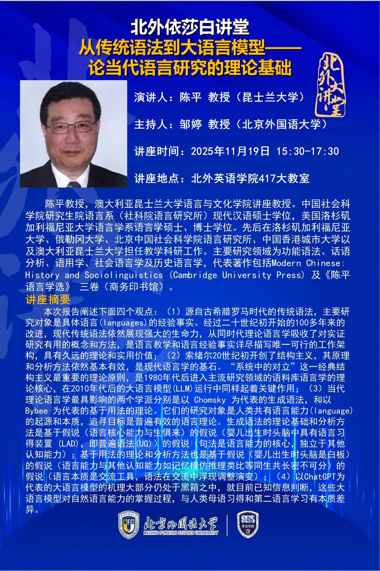 11月19日讲座:从传统语法到大语言模型——论当代语言研究的理论基础