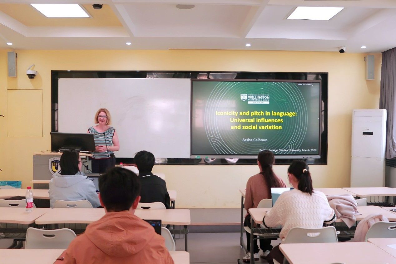 417大教室为我校师生带来了题为“Sound Symbolic Associations of Pitch: Social Variations and Their Implications”的精彩学术讲座。本次讲座由语言学中心邹婷老师主持,吸引了众多语言学、应用语言学方向的师生到场交流。