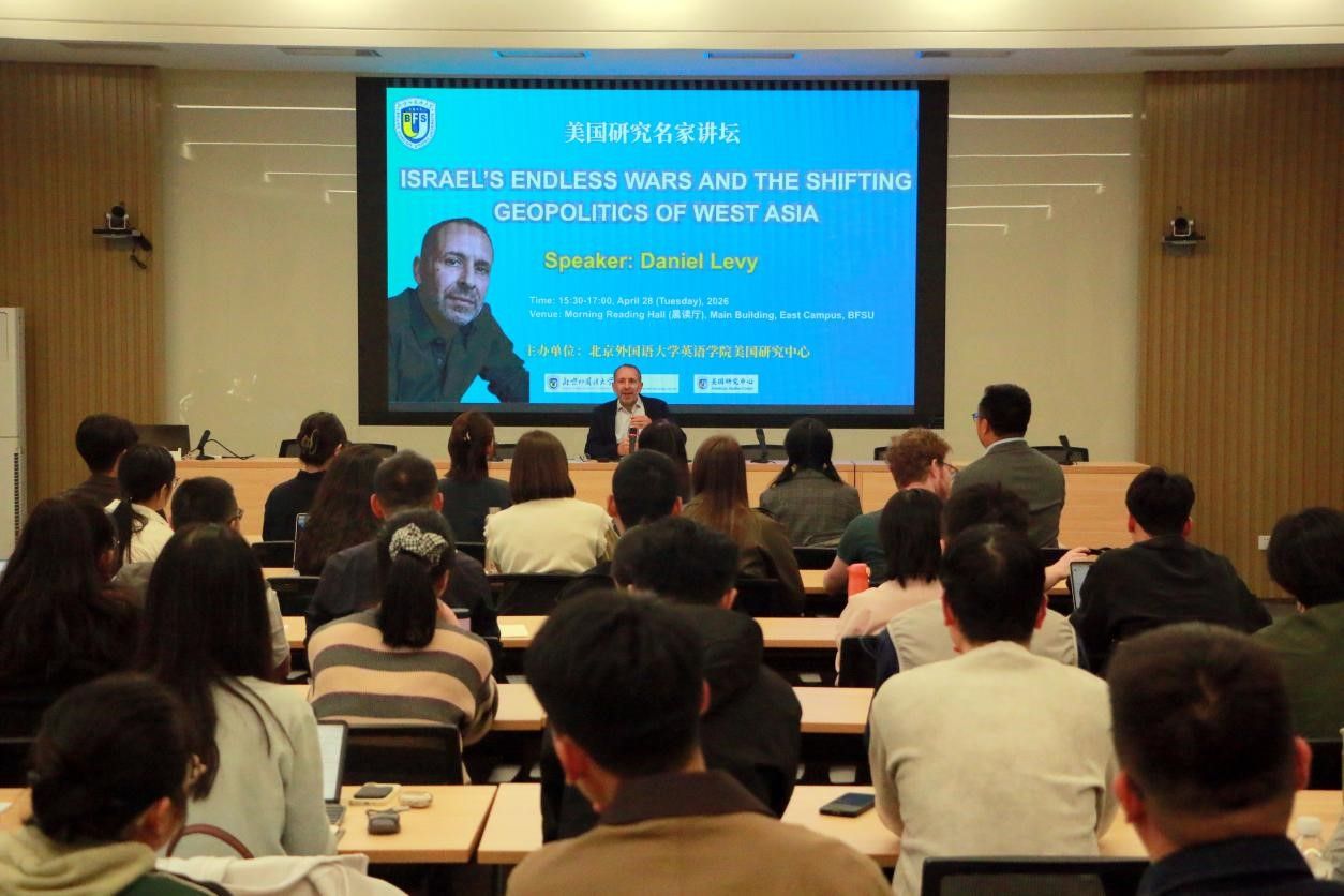 美国探花av在东院晨读厅举办美国研究名家讲坛,邀请美国中东项目(USMEP)主席丹尼尔·列维(Daniel Levy)做题为“Israel’s Endless Wars And The Shifting Geopolitics Of West Asia”(以色列持续冲突与西亚地缘政治格局的演变)的精彩讲座。